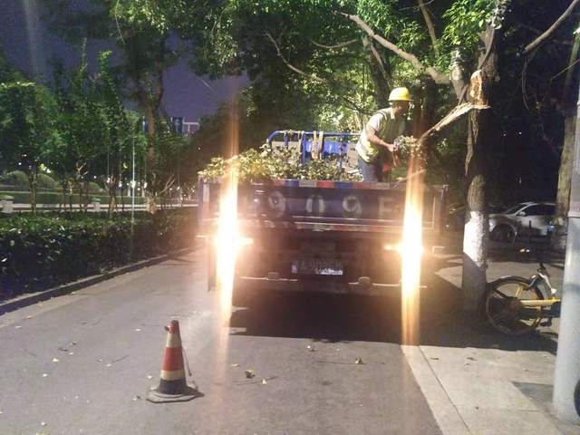 綠化養(yǎng)護隊伍,進行24小時值班巡查,對出現(xiàn)的倒伏樹木、斷枝和破損的市政設(shè)施,及時進行消險處理。本次防汛過程中共出動巡查及搶險人員90人次,投入車輛30臺次,清除危亭1處,險樹5處、斷枝4處。不僅保證養(yǎng)護區(qū)域綠化植物安全度汛,更保障了居民安全出行。