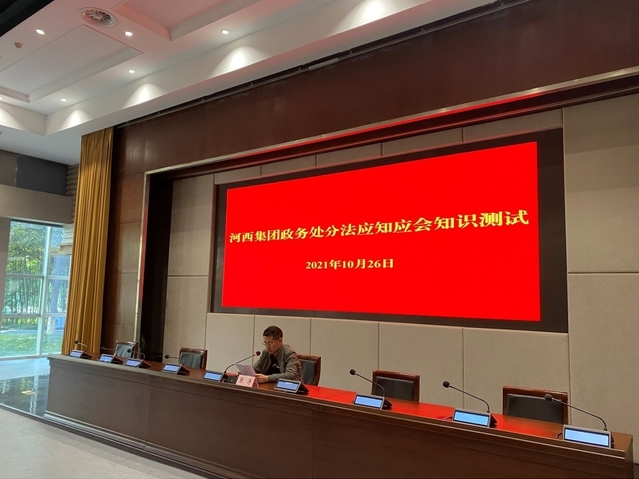 2021年10月26日下午,河西集團監(jiān)察專員辦公室開展警示教育活動,組織集團本部處級干部及下屬子企業(yè)領(lǐng)導(dǎo)班子成員進行《中華人民共和國公職人員政務(wù)處分法》應(yīng)知應(yīng)會知識測試。本次測試應(yīng)到36人,實到34人,2人遞交了書面請假材料,測試均分96分,學(xué)習宣貫效果良好。