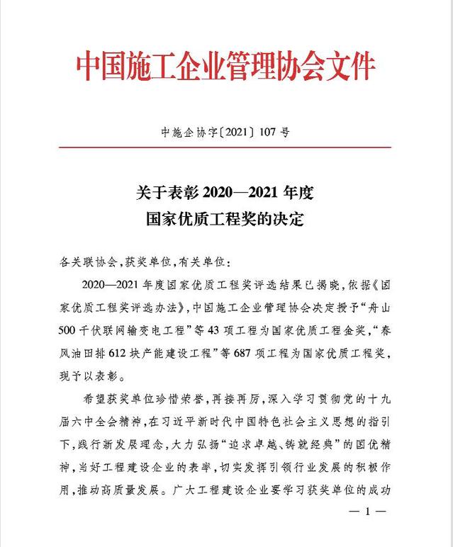 2021年12月6日,中國施工企業(yè)管理協(xié)會公布2020-2021國家優(yōu)質工程獎獲獎名單,河西集團新城公司所屬南京河西工程項目管理有限公司代建的招商銀行南京分行招銀大廈項目喜獲該獎項。國家優(yōu)質工程獎設立于1981年,是經(jīng)國務院確認的我國工程建設領域設立最早,規(guī)格最高,跨行業(yè)、跨專業(yè)的國家級質量獎。