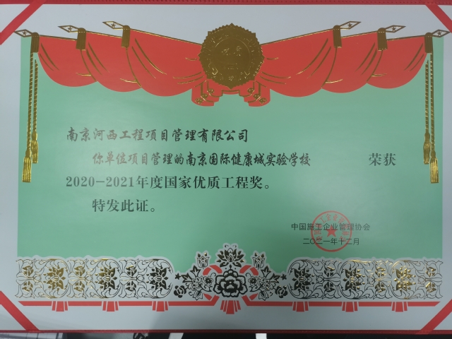 近期,河西集團(tuán)新城公司所屬南京河西工程項(xiàng)目管理有限公司代建的南京國際健康城實(shí)驗(yàn)學(xué)校項(xiàng)目項(xiàng)目喜獲“2020-2021年國家優(yōu)質(zhì)工程獎(jiǎng)”。