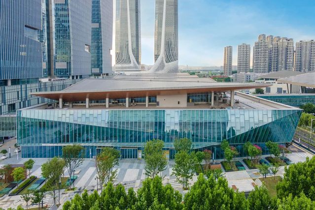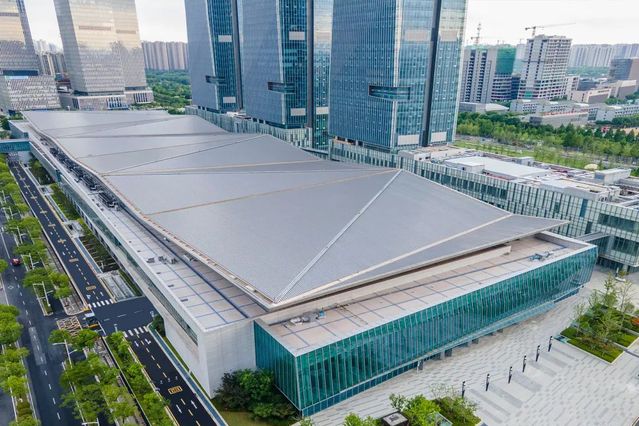 南京國(guó)際博覽中心三期1#樓及大地下室工程位于南京河西新城區(qū),北側(cè)緊鄰南京國(guó)際博覽中心一、二期展館,總建筑面積約21萬(wàn)㎡,地上2層,建筑面積約7萬(wàn)㎡,由展廳、商業(yè)、卸貨區(qū)等用房組成;地下2層,建筑面積約14.2萬(wàn)㎡,為車庫(kù)、設(shè)備用房等。工程于2017年4月20日開(kāi)工,2021年2月1日竣工??⒐ず?,河西集團(tuán)所屬南京國(guó)際博覽中心一、二、三期場(chǎng)館延江東中路連成一片,以華東最大的會(huì)展中心展現(xiàn)在世人眼前。